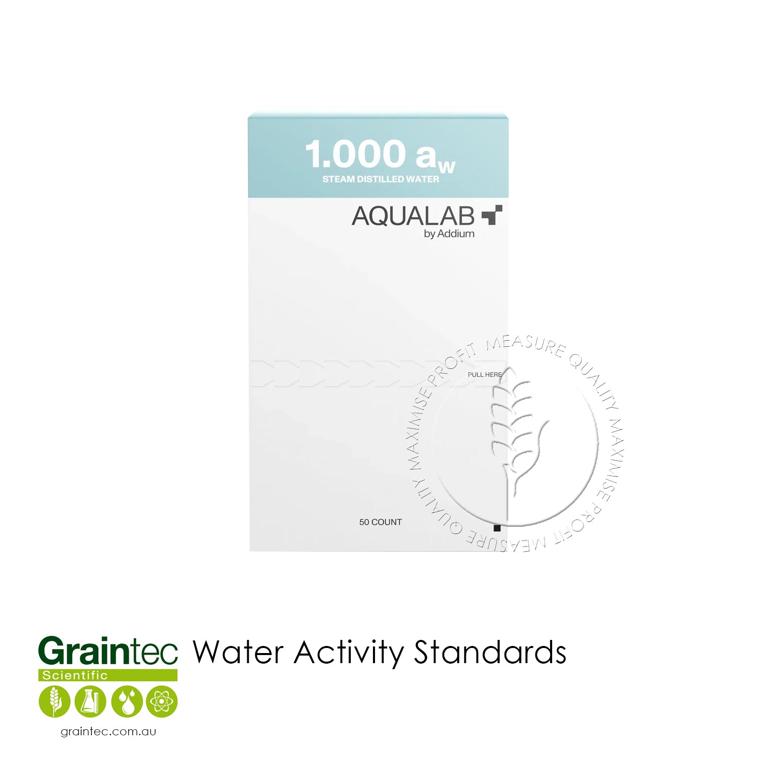 The water activity meter should be regularly checked against known water activity standards. This specific-molality salt solution in single-use disposable vials makes verification quick and easy.